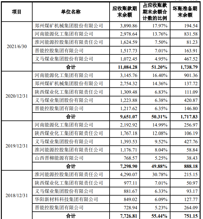 比较奇怪的是,郑煤机2019年以2411万元成为第四大客户,2020年入股北路智控后,当年采取与其他客户的下降趋势完全不同的操作,一跃而以9825万元成为第一大客户,贡献的营业收入超过后面四大客户之和,2021年郑煤机再次蝉联第一大客户。