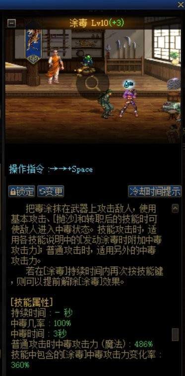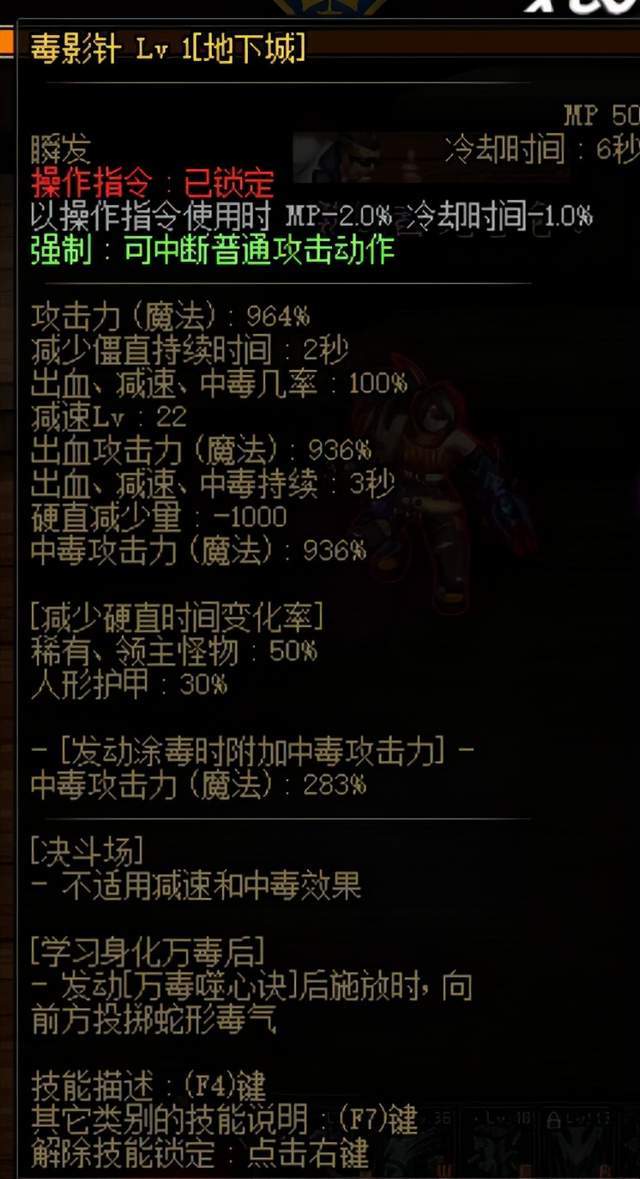 正如技能说明中所说,中毒攻击力变化率只影响发动涂毒中的部分,以毒影针为例