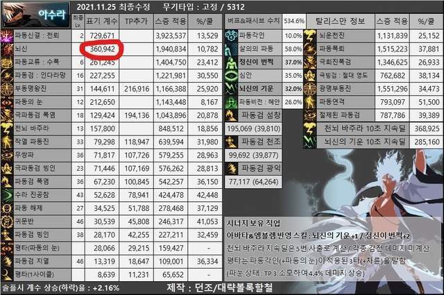 其原因是韩服这个表是没有算一些职业的异常伤害部分的,去掉的话就是