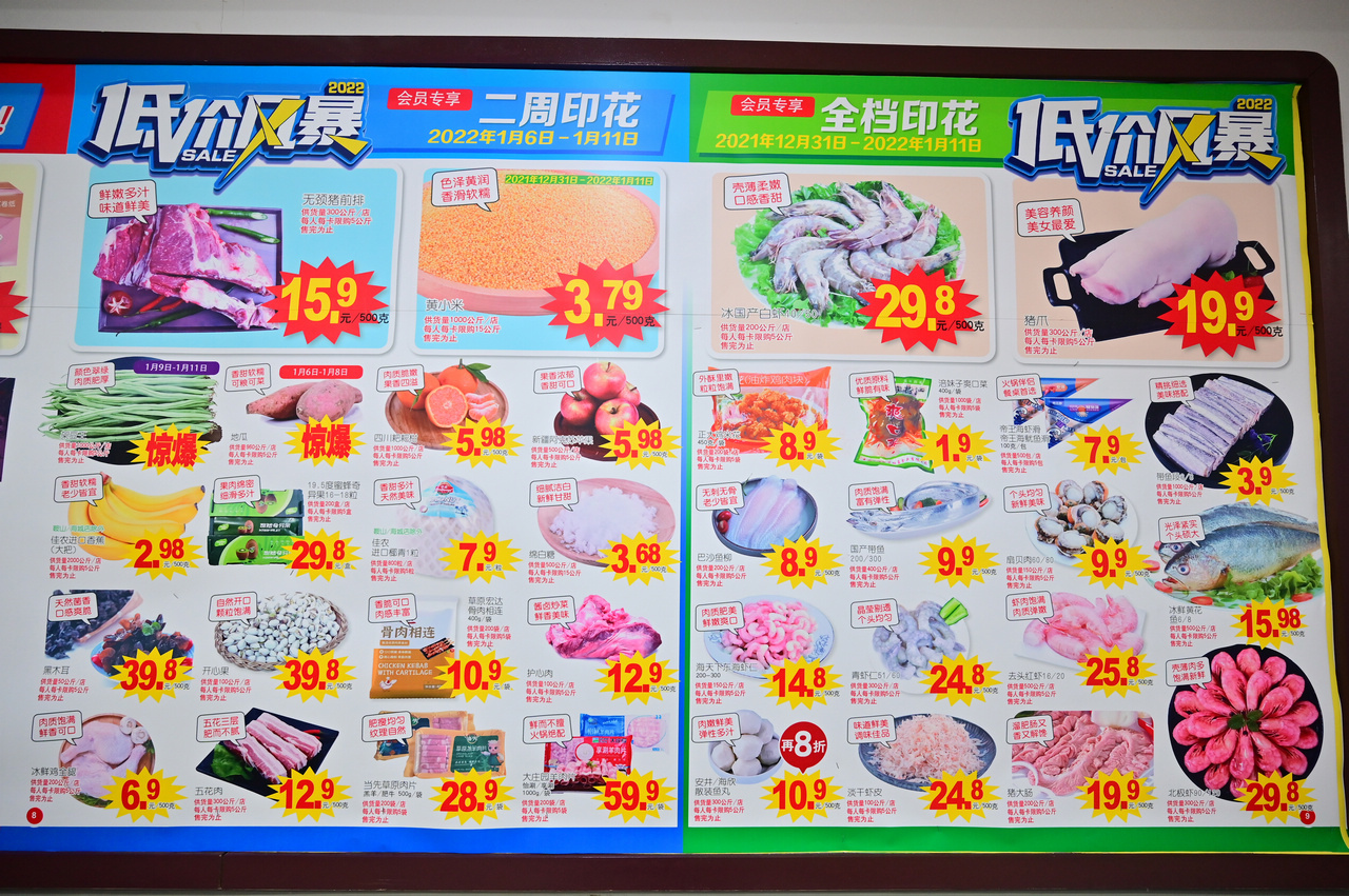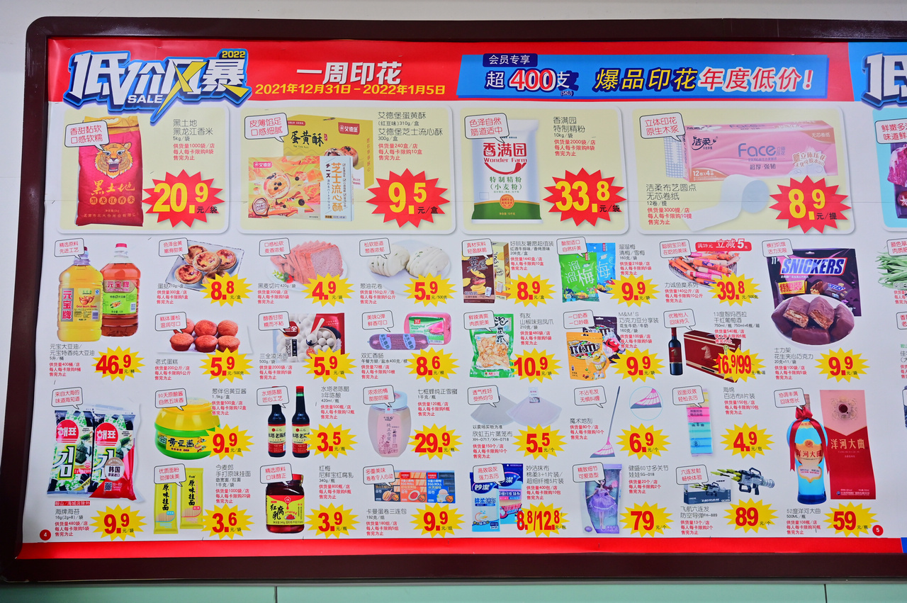 大润发在全国商超领域里销售额排名处于领先地位,大润发和平店也是沈阳市民生保供企业,三万多平方米的大润发和平店有三万余种商品,每期会员快讯都有海量信息,光是研究印花商品就花了半个小时,食材价格稳定,猪肉不到十元。