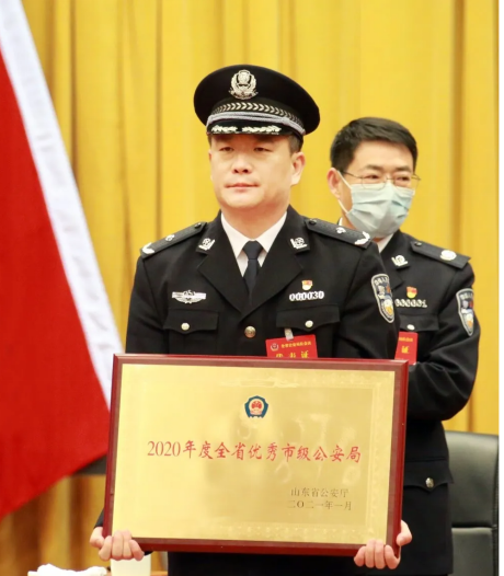 2021年1月28日,全省公安局长会议在济南召开。会上,齐都公安局被评为2020年度全省优秀市级公安局,并由朱清彬上台领奖。