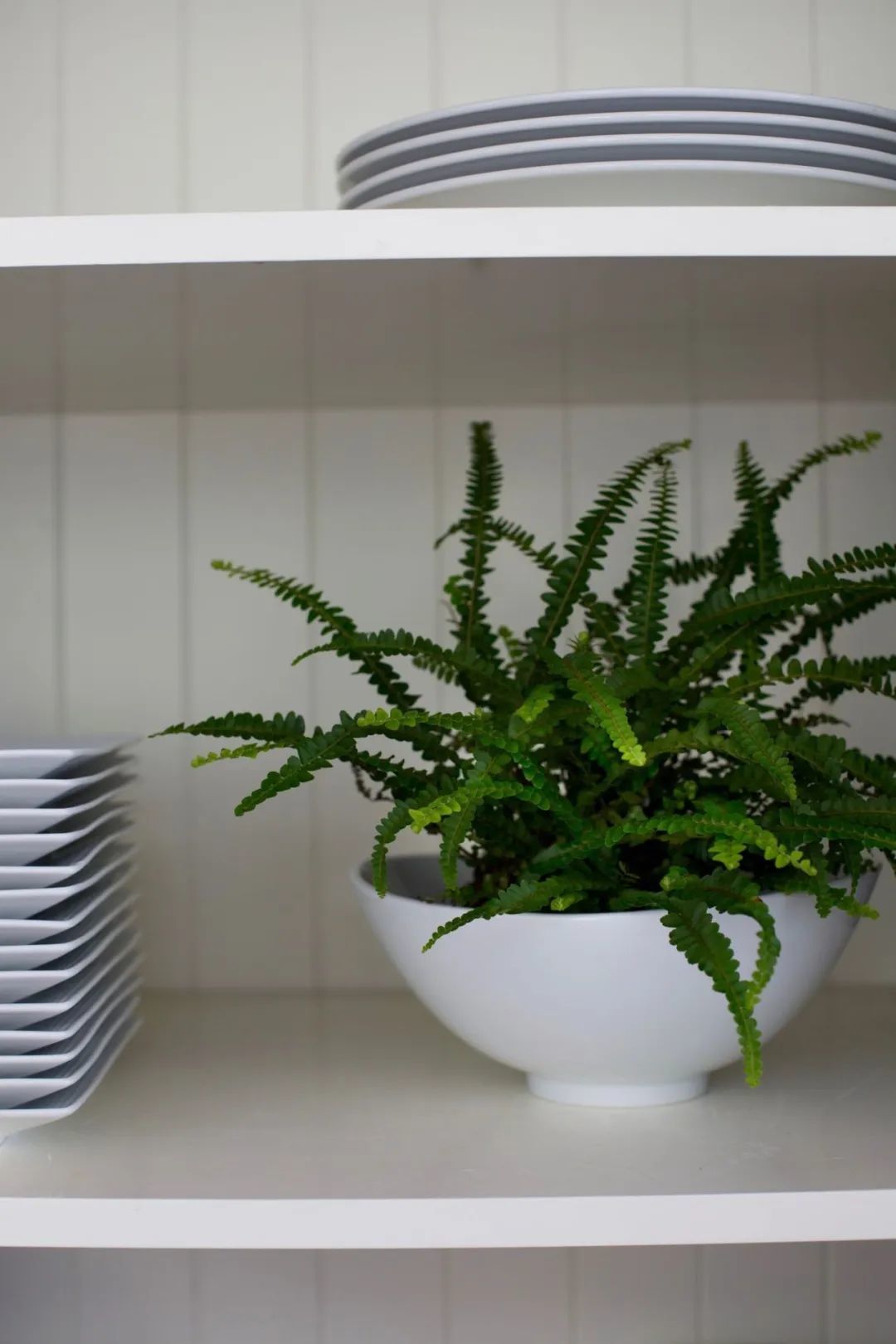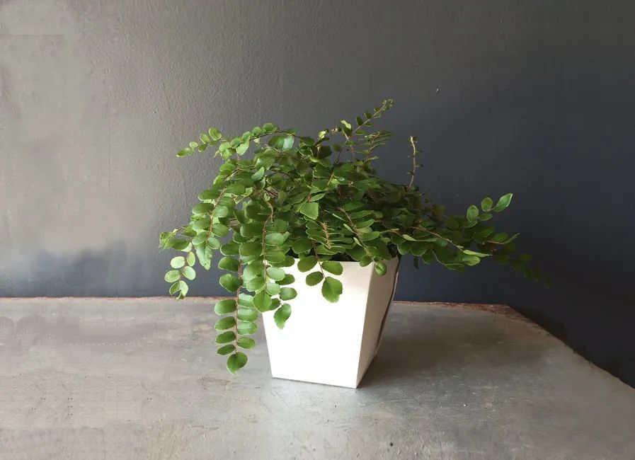 有很多观赏性蕨类植物植株都比较小巧,包括常见的鹿角蕨、鸟巢蕨、波士顿蕨和铁线蕨等。纽扣蕨的植株会比它们要更小,而且叶子一串串的,就有点像纽扣一般,它的叶子长得非常整齐,叶子可以保持常年翠绿。