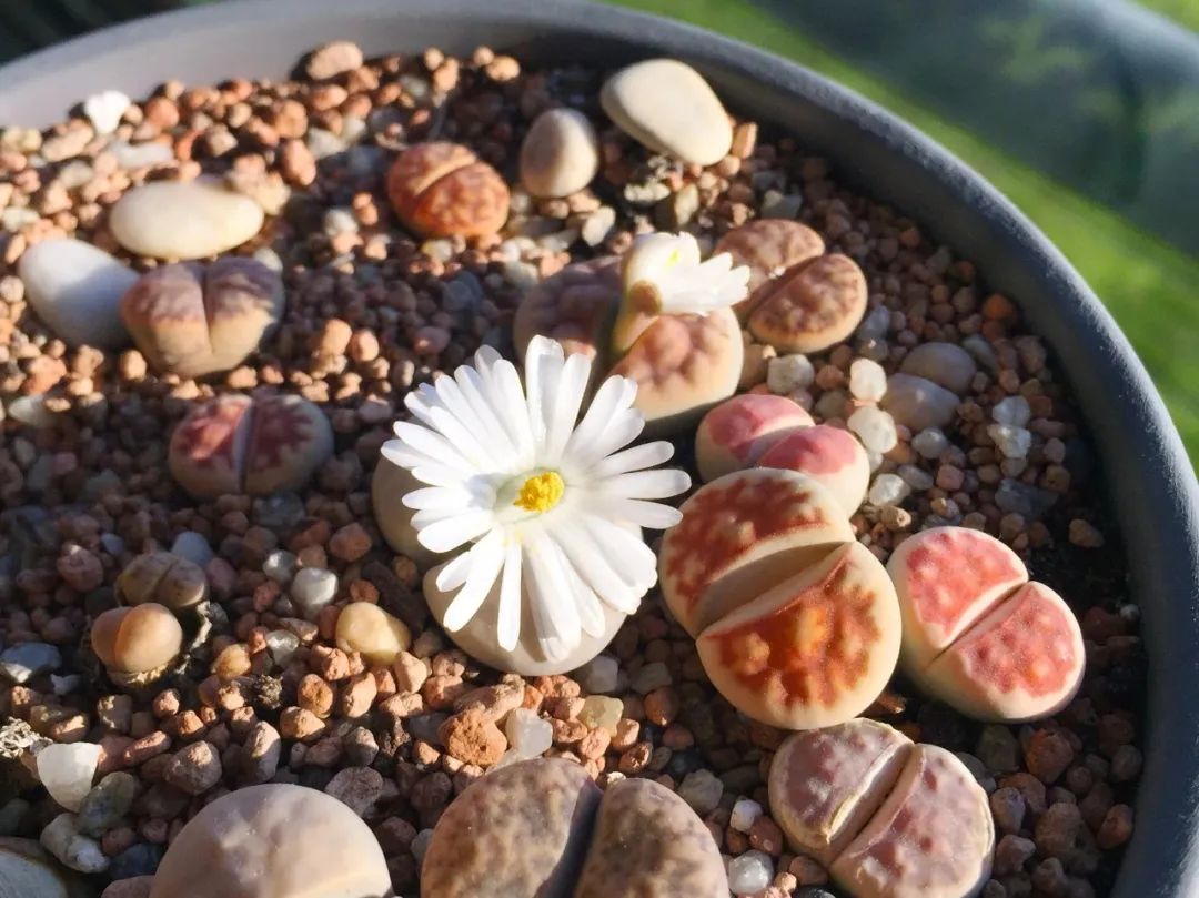 生石花原本生长在荒漠地区的,都是生长在石头堆里的,它们会和石头长在一起,伪装起来避免被吃掉。我们将这种多肉养成盆栽后,也要在土壤里多添加一些颗粒土,土质一定要疏松透气,保证它的根部长得更健壮。养护期间一定要避免经常浇水,它是非常耐干旱的,害怕水多,要保持环境凉爽。