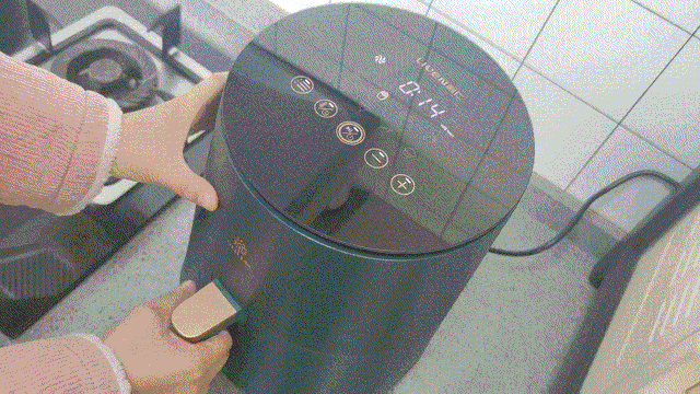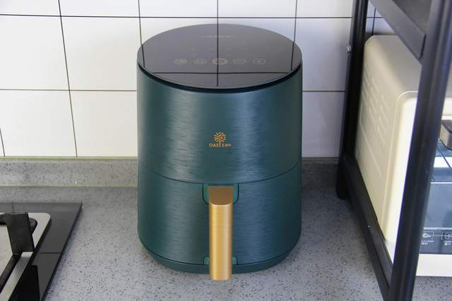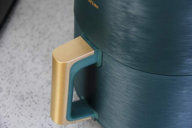 如果说利仁空气炸锅的莫兰迪绿色是一种高雅的朴素,那这表面的拉丝工艺再配上金色点缀,低调的轻奢感就像慢性中毒一样,悄悄浸入心中,越看越喜欢。