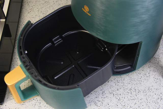 方形圆弧设计的烤篮内部均为不沾涂层,容量为3.5L,是一个什么概念呢?蛋挞平铺可以放4个,鸡翅平铺可以放7个,烤鸡的话只能放一只童子鸡。总体而言,这款利仁空气炸锅更适合于1~2人份的甜点小食制作,那种指望它能做一桌子大鱼大肉的懒人还是算了吧。