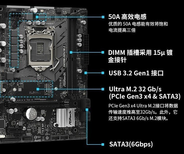 主板选择了华擎H410M-HDV/M.2版本,也是极具性价比的十代主板之一了。7相数字供电、DDR4双通道内存、M.2插槽、千兆网卡+无线网卡接口,配置不输一线大厂同类主板。