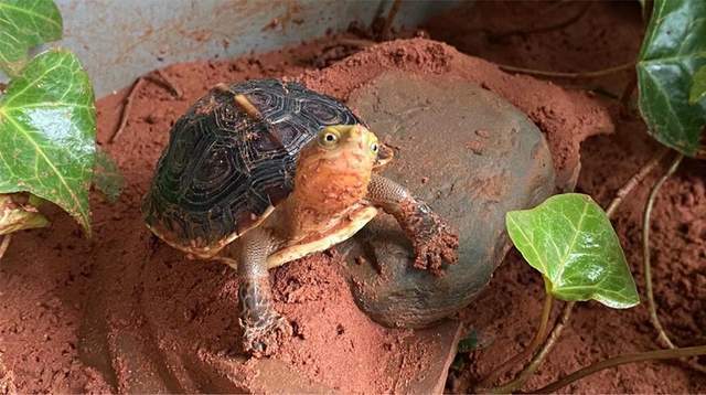 水区的问题解决了,我们再说说陆区,陆区的主要问题体现在湿度的保持、土壤结块、长虫子方面。小黄缘龟相比大的亚成和成体需要的湿度环境更高,黄缘喜欢刨土把土粘甲壳上面,然后泡水,这样可以保湿很久。而不是简单的保持高湿60%-80%,有的龟友保持湿度60%-80%,环境又闷,那么整个环境很快就会恶化。大家可以在土壤湿度方面多下功夫,确保土壤湿润,这样也能达到高湿的目的。至于土壤结块和长虫子方面就涉及到环境污染问题,大家可以采用沙土混合,这样结块的概率会小一些,对于已经结块的部位也方面拿出来处理。另外可以采用泡水排便的方法,来减少小黄缘龟排泄对环境的污染。最后就是当环境到达一定承载量的时候,大家需要换换土,定期晒晒土杀菌消毒。小黄缘龟最好每天有几个小时的散射太阳光的照射为宜。