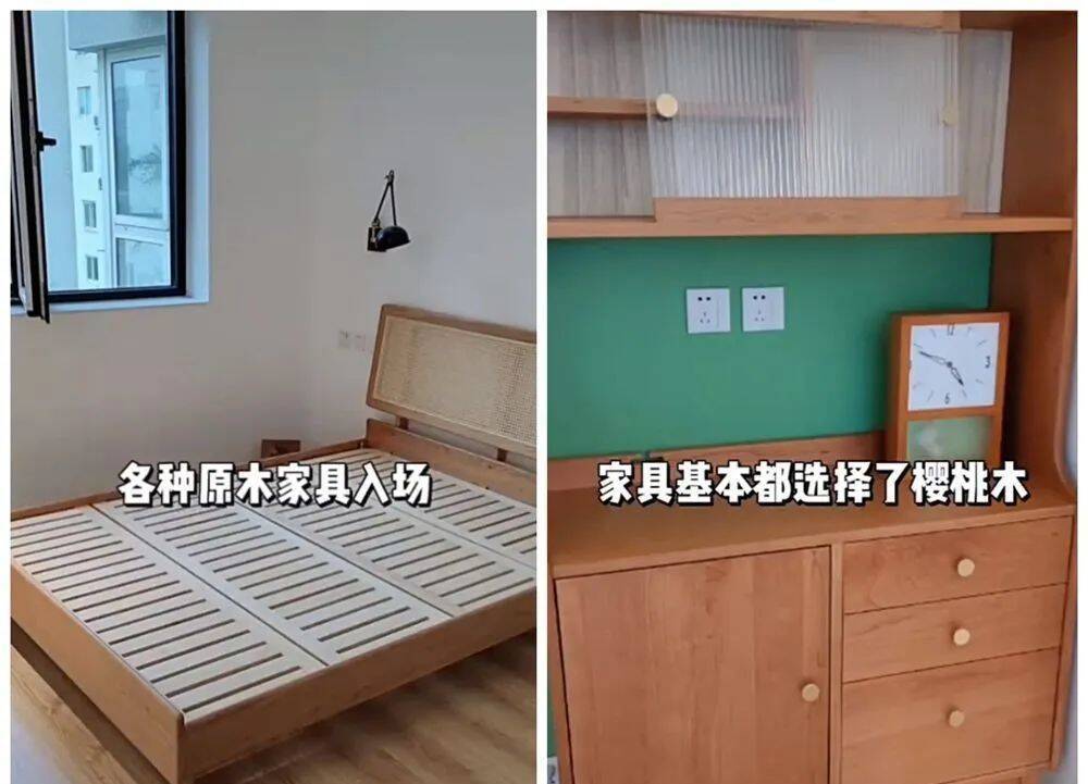 硬装完毕后,就是准备家具和软装了,家里尽可能采用原木风的设计,家具基本上都选择了樱桃木,看上去温润自然,倍感和煦。