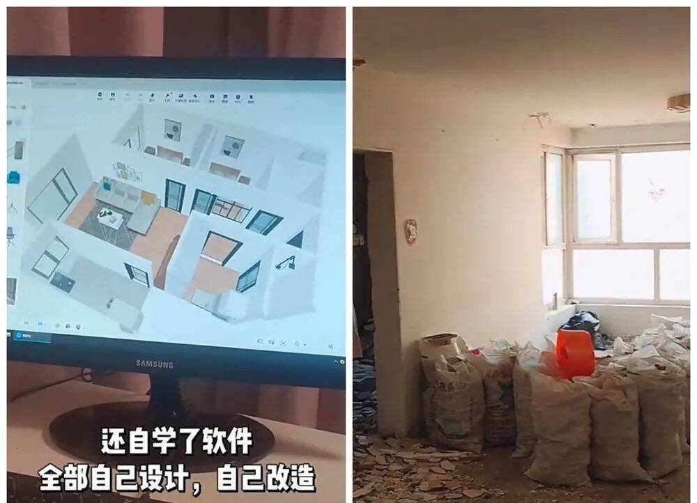 仔细分析过小家的弊端以后,妻子决定自己使用设计软件,并且规划设计,经过一番大肆拆改之后,夫妻俩开始对小家进行软硬装的改造。