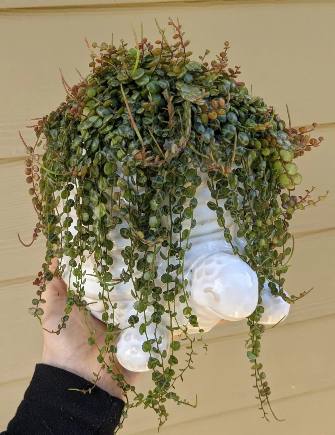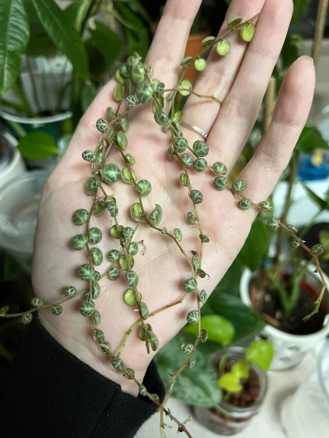 蔓椒草(Peperomia prostrata)是我非常喜欢的一种室内观叶植物,它的植株小巧,叶子上有着可爱的斑纹。大家去花市或网上购买蔓椒草时,就不能直接问“蔓椒草”,而是要问“纽扣椒草”或“纽扣蔓椒草”,这是人们对它的美称。