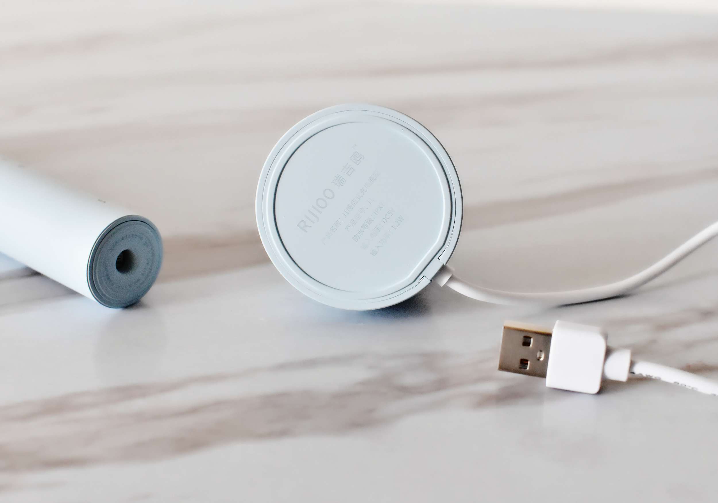 充电时只需要把无线感应式充电底座的USB电源口连接电源适配器,将电动牙刷竖直放入充电底座即可开始充电。续航方面也很强大,满电状态下可以续航90天左右,出门旅行也方便,不用频繁充电非常省事。
