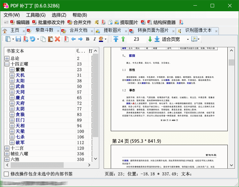 据官方博客介绍,PDF 补丁丁是一个多功能的 PDF 文档工具箱,致力于解除 PDF 文档的烦恼,带有一个强大的 PDF 书签编辑器(可自动生成书签),有超快的从 PDF 文档里无损提取图片的能力,又可以合并图片和 PDF 文档,统一页面尺寸,清除文档的打印和复制限制。