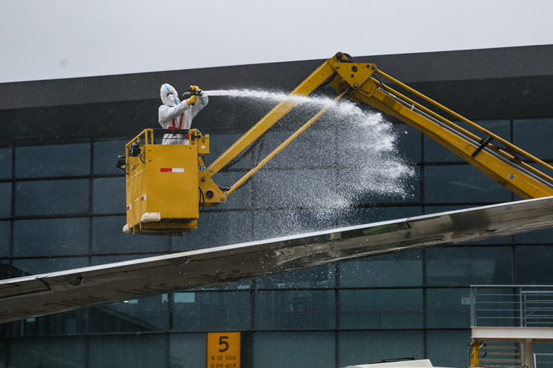 徐张进表示,以当天的温度条件,如果不再下雪,飞机可以不除冰。截至下午1点,机场共为4架飞机进行了除冰作业,消耗除冰剂690升。