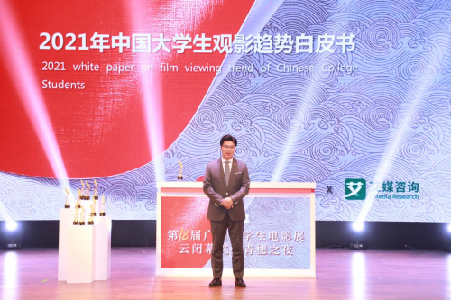 2022年1月3日,第十八届广州大学生电影展云闭幕式暨青穗之夜在平安大戏院举行。本届广州大学生电影展(以下简称:大影展)以“奋斗正青春”为主题,云直播的方式推荐多项电影荣誉,为过去一年的优秀电影人及电影作品加油,鼓励中国青年学子用影像感知世界,发出青年声音。此外,这也是大影展有史以来的首次发声,联合艾媒数据重磅发布了《2021年中国大学生观影趋势白皮书》,梳理了2021年中国大学生观影现状与趋势,通过暨南大学艺术学院、珠江电影学院副院长叶志海的精彩演讲为观众们带来了清晰、全面的解读。