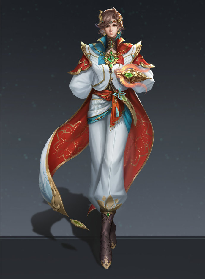 从美学设计设计来看,暃出生成长于玉城这个云中漠地最繁荣的城邦,因此在他的外观设计中,我们选取了很多带有异域元素的华丽装饰来表现他的身份,优雅精致、细节讲究的王子形象跃然眼前。此外,玉城的特产——“灵玉”也被作为重要的元素融入到了暃的服饰设计中。我们希望呈现给大家一个特色立体的人物形象,从视觉到体验再到人物故事都将围绕“玉”来设计塑造。