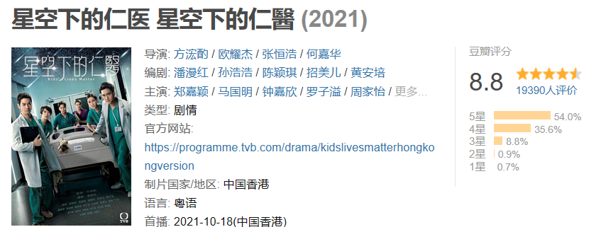 相比之下《星空下的仁医》将TVB医疗行业剧带回到以往的制作水准, 钟嘉欣和郑嘉颖、马国明,以及《叹息桥》后火起来的周佳怡同台竞技,演技完全不落下风,在剧中充当两个男主之间沟通的桥梁,一句“好久不见”就让人瞬间泪目。