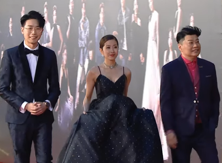 首先这个背景板和红毯就吸引了网民的注意,果然是朴实无华的TVB审美了。