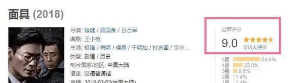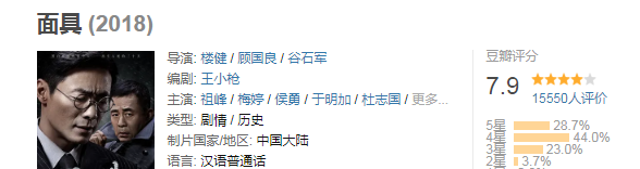 《面具》豆瓣最初开分高达9分,之后稳定到了最终的7.9分。
