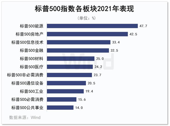 评论:在经历了惨淡的2020年(-37.3%)之后,能源板块在2021年重整旗鼓,大涨47.7%,并跑赢标普500指数。伴随全球经济迅速回暖,油价大幅走高,布伦特原油和美国原油2021年涨幅双双超过50%。摩根大通策略师相信,油价飙升的“超级周期”才刚刚开始。