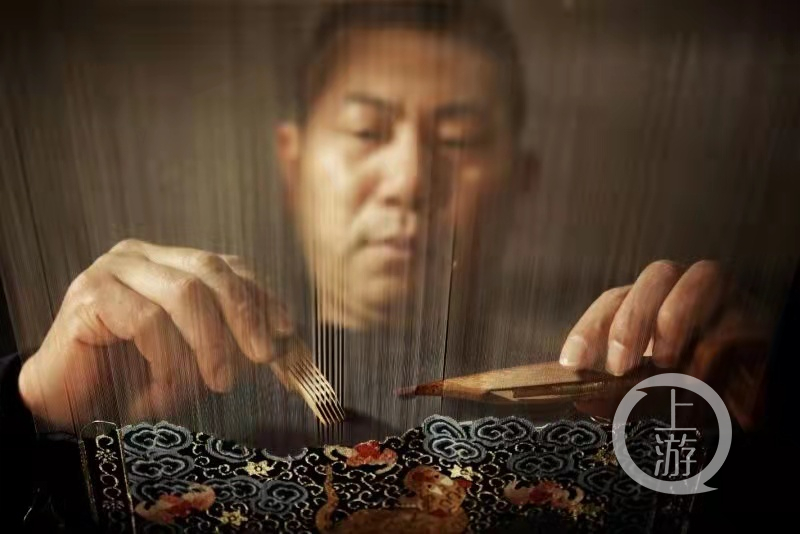 1月4日,上游新闻(报料邮箱:cnshangyou@163.com)记者走进非物质文化遗产传承人王建江的缂丝工作室,以梭为媒,以线为路,跟着脚下的踏板,感受缂丝的时光记忆。“保留下来的每一件缂丝作品都体现出先人们精湛的技艺,修复是与先人对话,复刻是对技艺的传承。每一位缂丝手艺人,都要有一颗耐得住寂寞的心。”王建江说。