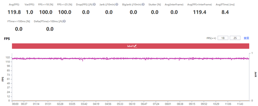 我们也进行了游戏的实测,例如《王者荣耀》可以支持到120Hz的原生超高帧数,在使用iQOO Neo5 SE使用时,其可以进一步发挥到144Hz高刷新率屏幕的优势,带来极为流畅的画面效果。而在通过PerfDog性能测试分析记录后,我们可以看到iQOO Neo5 SE上能长时间保持在120帧下运行,平均帧数达到了119.8帧左右,在游戏方面拥有不错的体验。