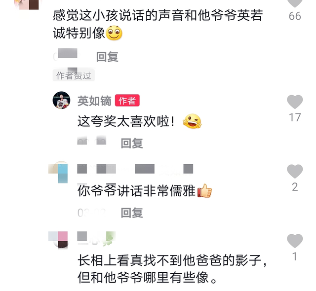 当时就吸引了不少粉丝的关注,称他长相不似爸爸,反而和爷爷有些像,说话都很儒雅,听到这番夸奖,英如镝还很开心地回复了粉丝。