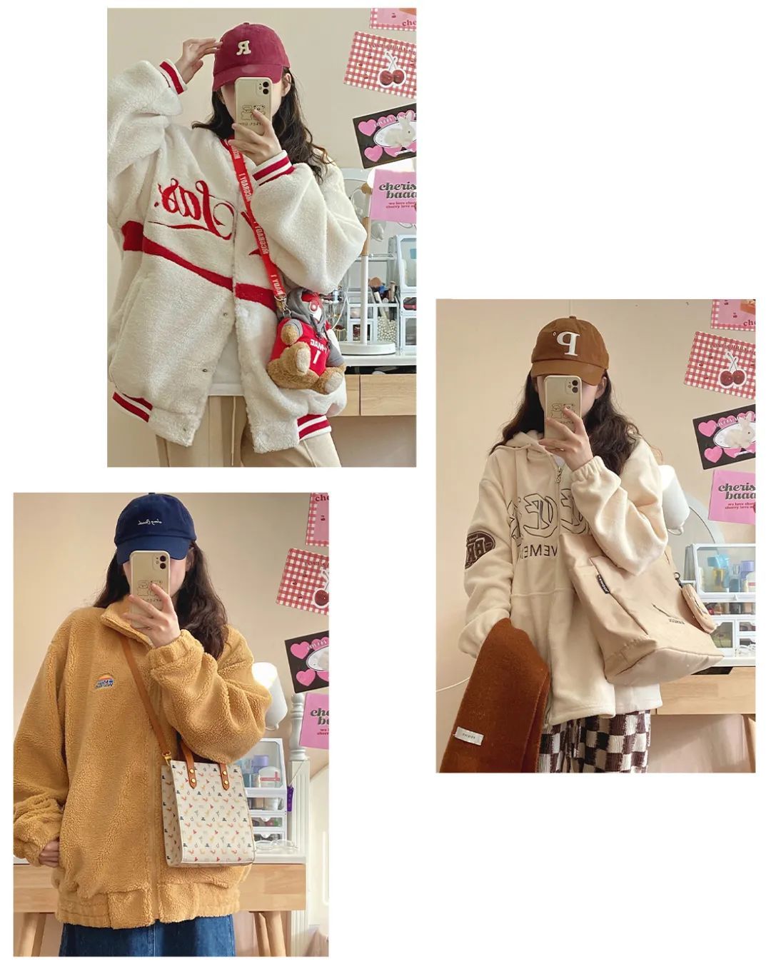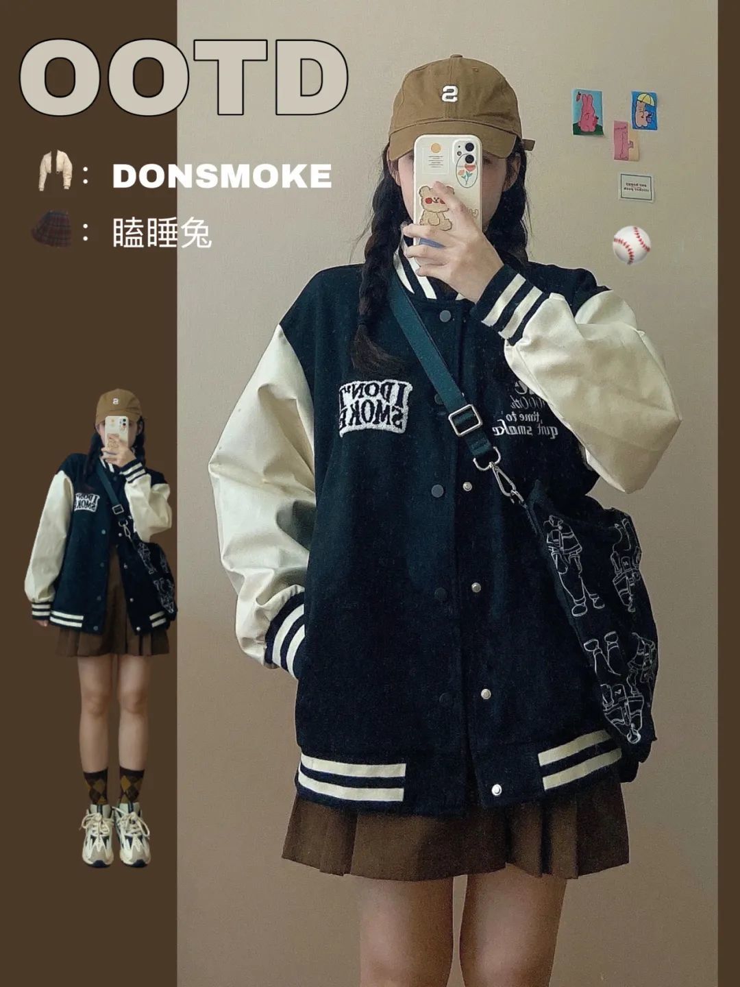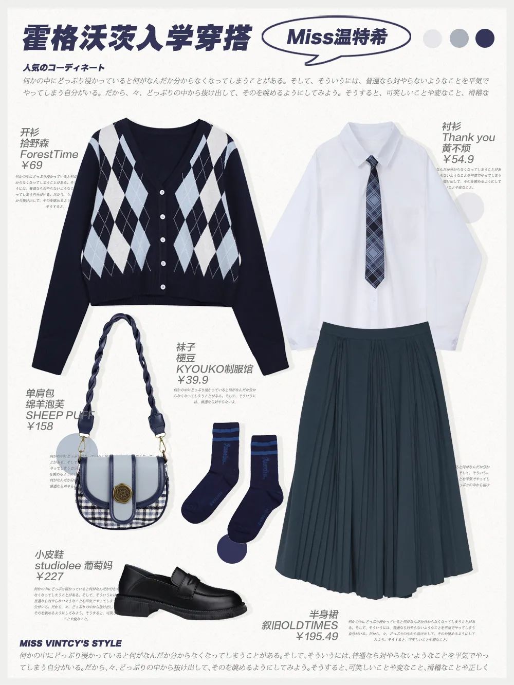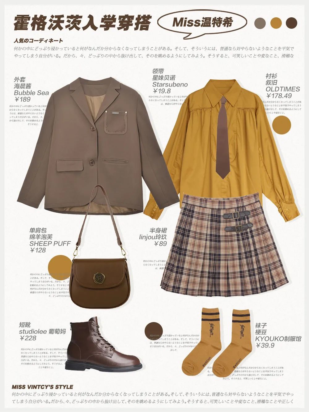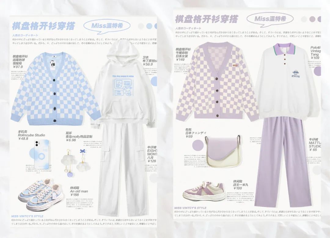 选择的单品剪裁都是基础好搭配的类型,但是 材质、细节设计 又可可爱爱的,比较毛绒材质、学院风的配色、可爱小刺绣等等。