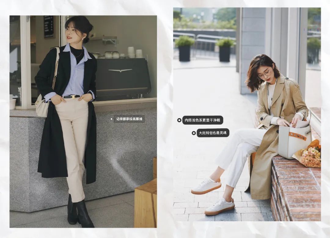 衬衫、大衣、休闲裤等等都是很适合通勤的单品,而且她们还会给出一些 穿搭的小tips ,用简单的单品穿出时尚、气质的效果。