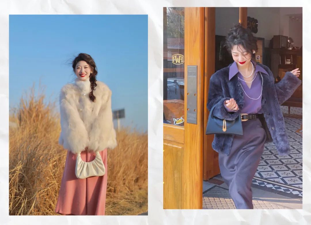 也有看起来很“贵”的名媛大小姐风,是比较温柔、气质的感觉。各种毛茸茸的外套也超级适合冬天的,好看又保暖。