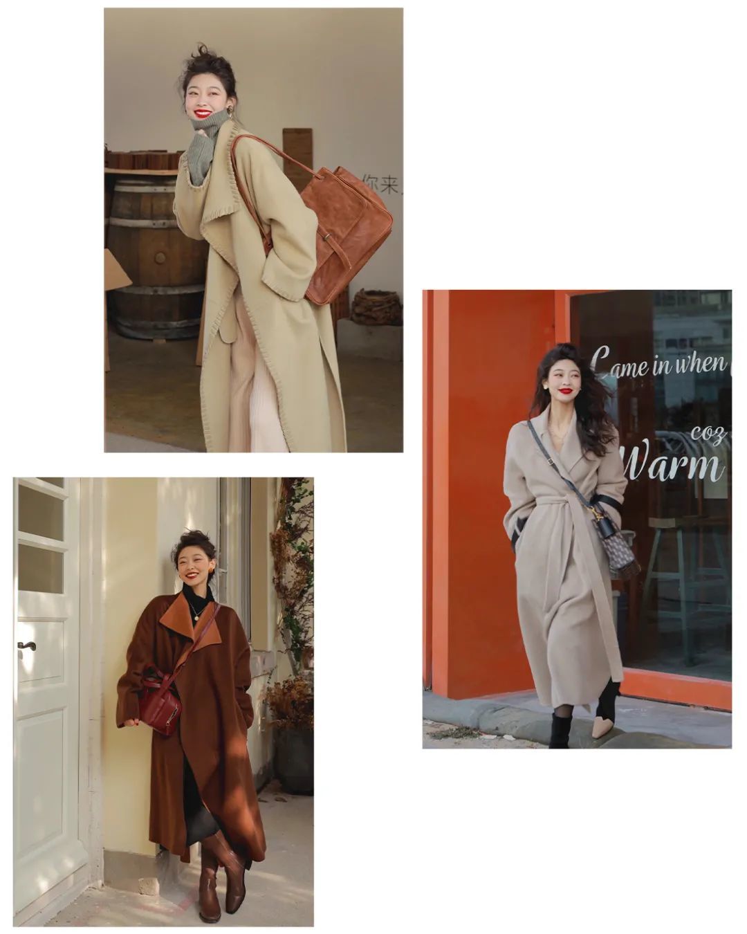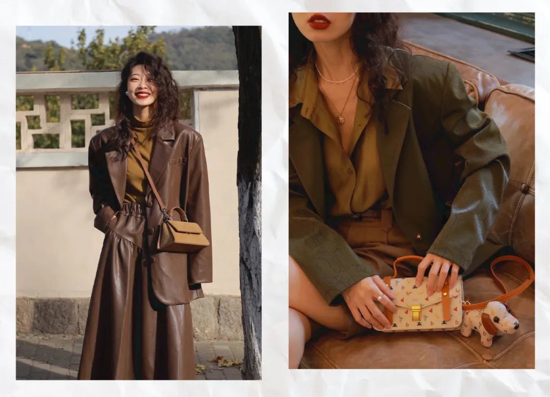 当然喽除了比较出挑的颜色之外,她也会发很多基础色系的穿搭,像秋冬季节就会发大地色系的大衣搭配,很适合日常、通勤。