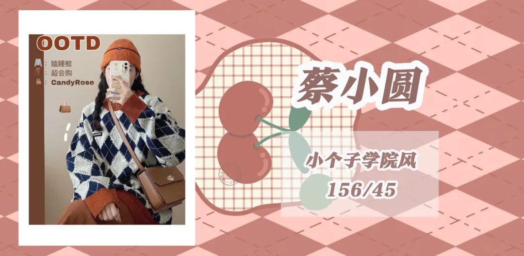 接下来是 小个子博主「蔡小圆」 ,她的风格就是比较学院风的,有点复古有点甜美的感觉,适合学生党和想穿出减龄感的姐妹们。