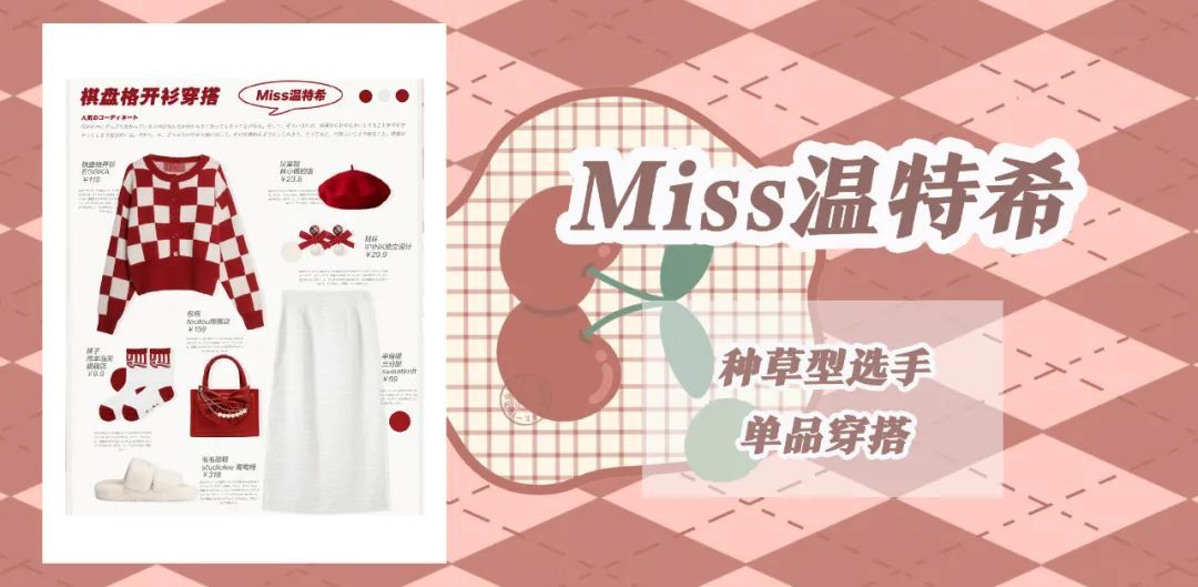 最后一位, 「Miss温特希」 就是种草型选手了,不过她不是单一地分享单品,而是会进行整体的搭配,包括鞋子、包包、小饰品都有。