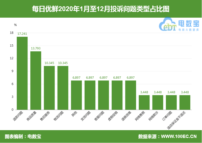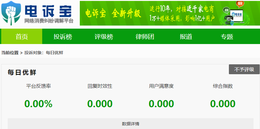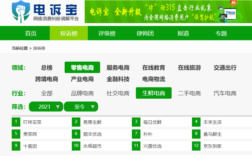 根据“电诉宝”受理的生鲜电商领域用户有效投诉显示(依据投诉量排行),每日优鲜排名第三位。