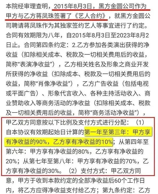 在2015年,《花间提壶方大厨》的女主角蒋佳恩,与黑金签下了八年合约,艺人与公司的比例竟然是1:9,初期比例就这么过分的公司,属实罕见。