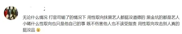 这一波操作,让很多网友直呼“下头”,有网友认为,无论什么情况,官司输了用取向抹黑艺人,很没品。