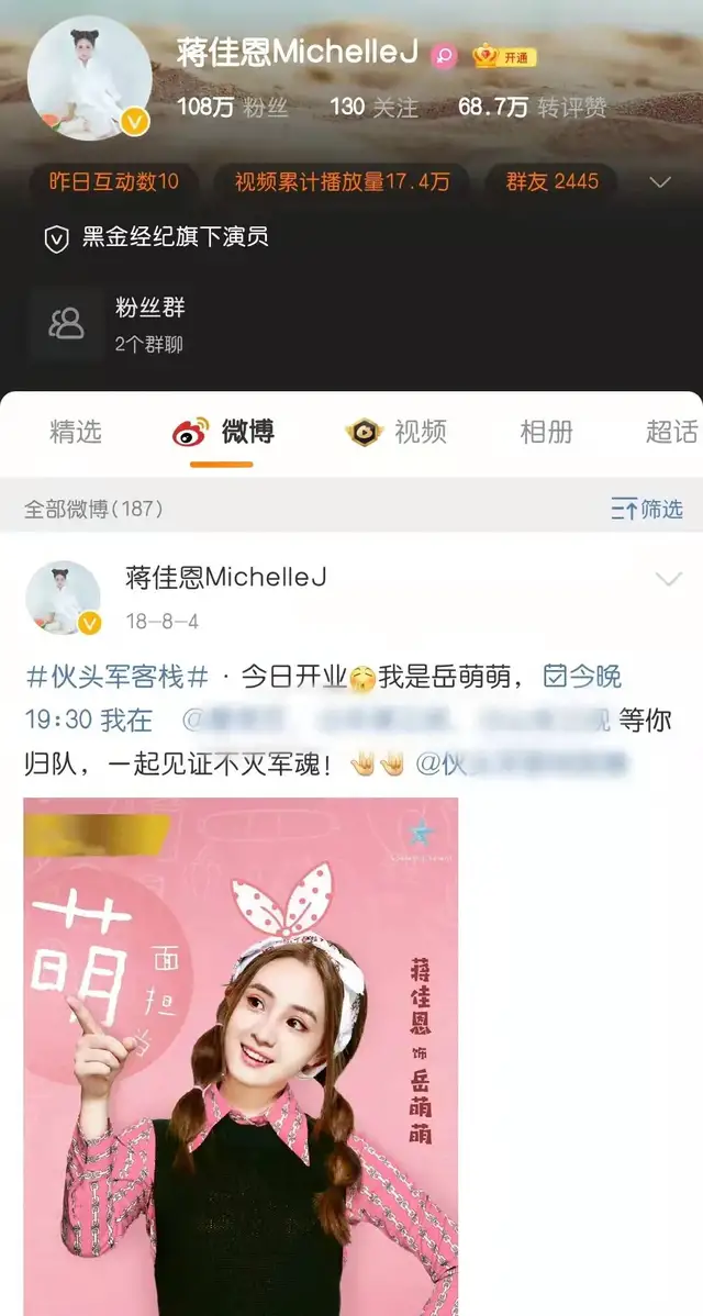 黑金方向蒋佳恩索赔575万,最后法院判决蒋佳恩赔偿152万。在蒋佳恩事业上升期的时候,她突然“消失”了,其社交平台动态至今还停留在2018年的8月。
