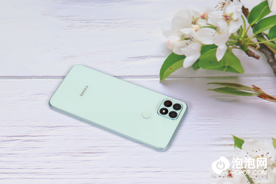 评测机为青山翠配色,背面为亮面效果,呈现出淡淡的绿色效果,清新有活力。中框做了哑光处理,与背面颜色类似,更加自然和谐。