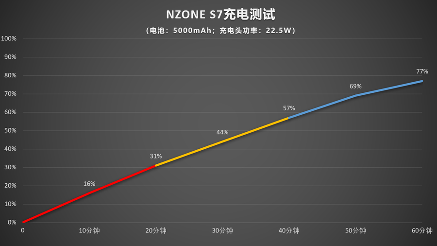 续航是这款手机的一大亮点,NZONE S7内置5000mAh大电池,支持22.5W疾速快充,手机具有六大安全充电防护,让你充得放心。充电续航部分我们都进行了实际测试。