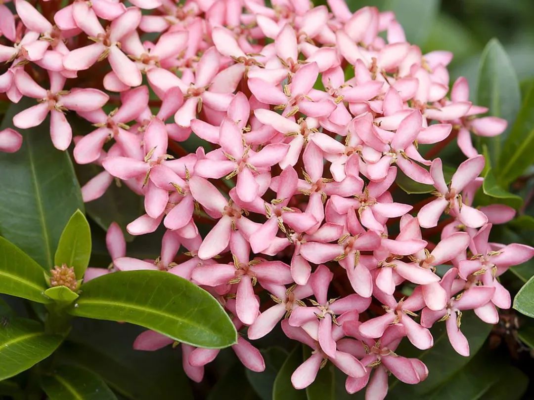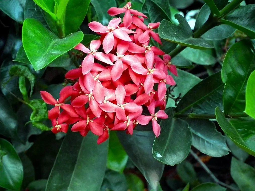 龙船花原本是生长在我国南部地区的,现在已经变成世界各地流行的景观花卉,它的花朵亮丽,叶片也带有光泽,是观赏性非常好的盆栽花卉。