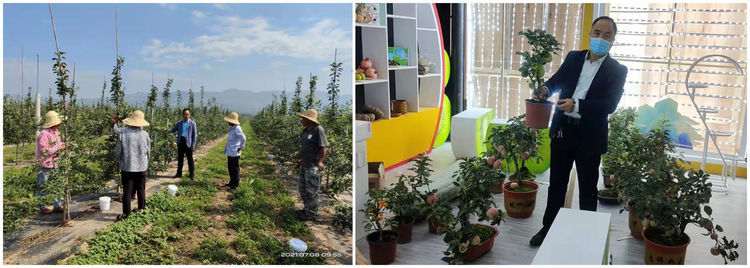 岐山县果树站技术干部杨建新,从事果树栽培技术推广20余年,长期扎根基层,服务群众。为了提升服务群众的能力和水平,勇于“将手伸进面盆”,带头建立了50亩高质高效示范园,展示新品种、新技术,做给群众看、领着群众干。在长期技术推广实践中,他研究总结形成了果树育苗、综合拉枝、盆景果树栽培、双品种树栽植等9项新技术,在岐山及周边果区果农中被广泛应用。另外,他把自己培育的20万株自根砧无毒苗木以成本价售卖给周边群众,引导果农顺应市场需求发展盆景果树13万盆,市场供不应求,为果农带来了较高经济收入。