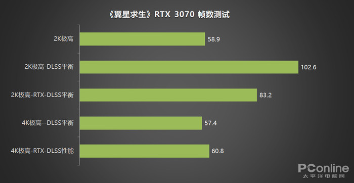 性能没问题,那就进入游戏吧。从刚才的测试结果上看,除了RTX 3060之外,其他显卡都可以挑战一下4K分辨率,因此我们会在4K分辨率、2K分辨率下对前面四张显卡进行测试,而RTX 3060则是在2K和1080P分辨率下进行测试,画质均设定为极高,DLSS视帧数表现进行开启。