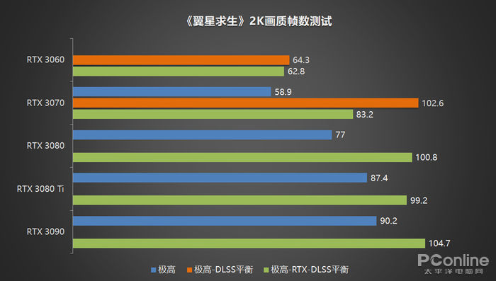 RTX 3060和RTX 3070在开启DLSS平衡之后进行测试,RTX 3060平均64.3帧、RTX 3070平均102.6帧。