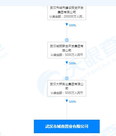 股权穿透显示,武汉市城南置业有限公司为武汉城投全资子公司。