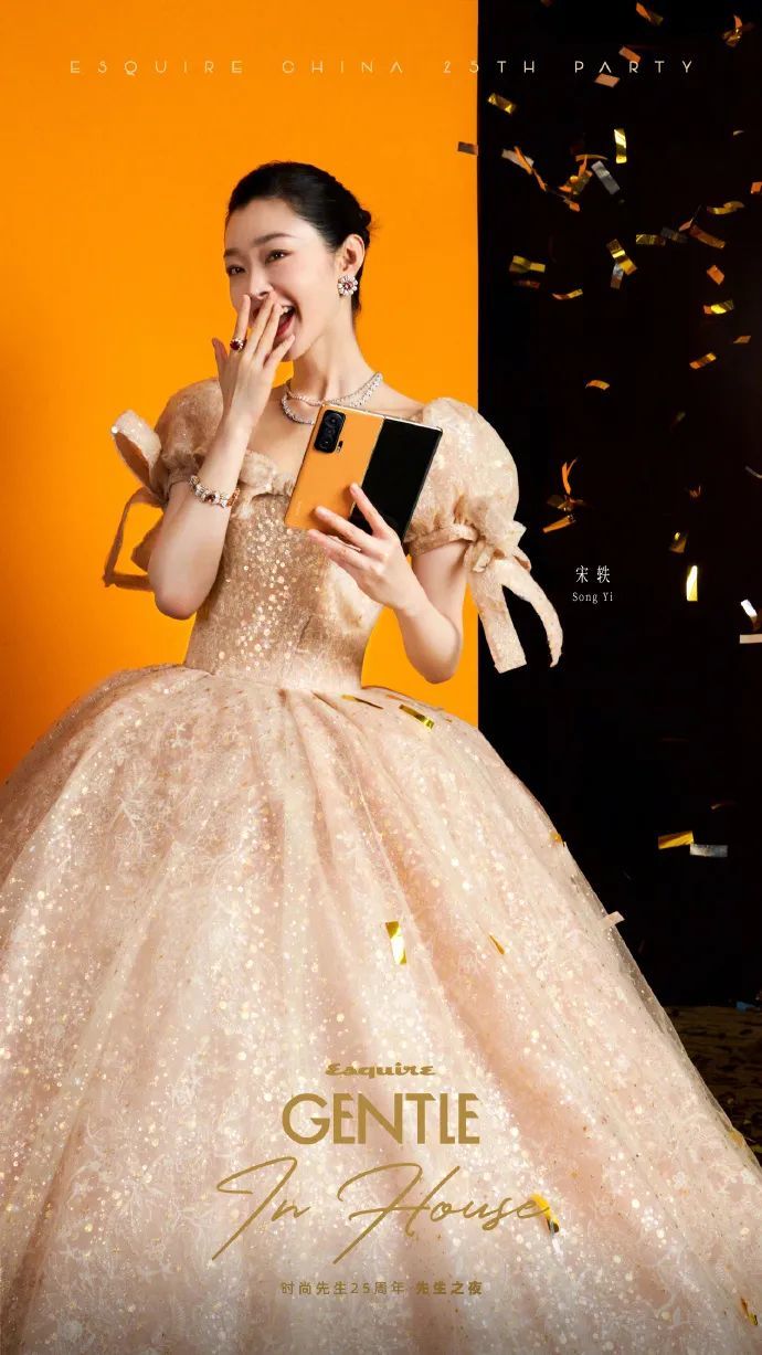 背面镜头模组部分,荣耀 Magic V 采用后置三摄方案,竖向排列于小面积的矩阵镜头模组内,其中包括一枚大底主摄与一枚大底副摄。银色版本条纹拉丝处理,呈现出金属质感与光泽。而在今天则公布了该款机型的素皮版本,整体采用橙色 + 金色的配色方案。并且或由演员宋轶进行产品代言。