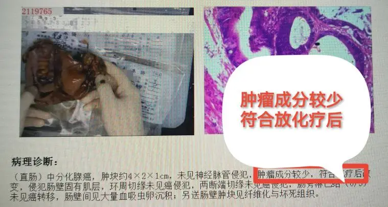 在手术的过程中,我们欣喜地发现肿瘤明显退缩,已经达到了保肛的必要条件。