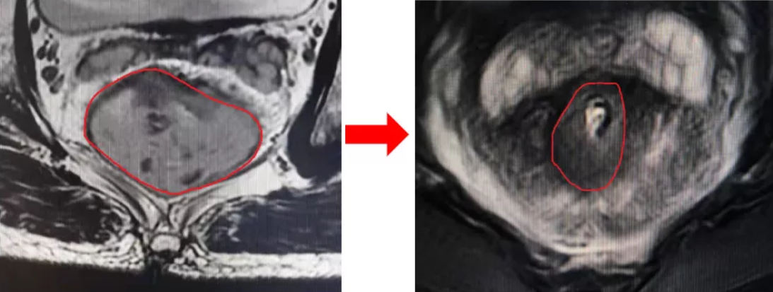 曾林随即转入肿瘤科,从8月份开始接受术前同步放化疗,放疗结束后复查磁共振发现肿瘤较前明显缩小。