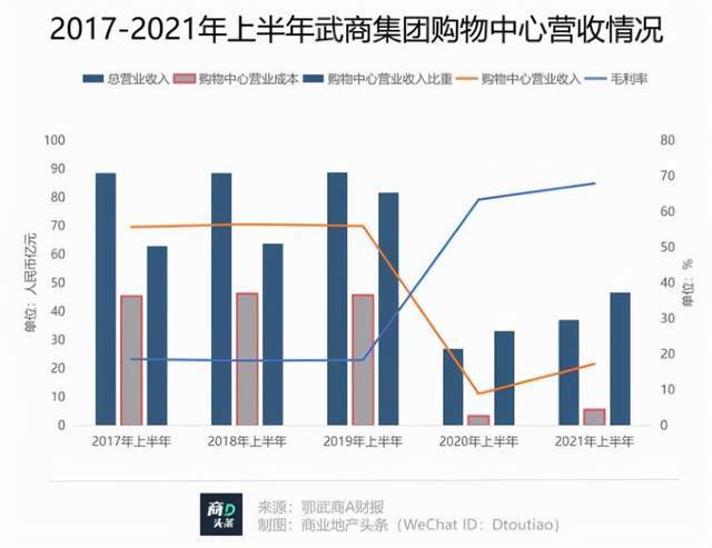 自2015年起,武商就再无新项目入市;2017至2019年,几乎持平;到了2020疫情之年,营收缩减至76.39亿元(采用2020年新会计准则统计)。