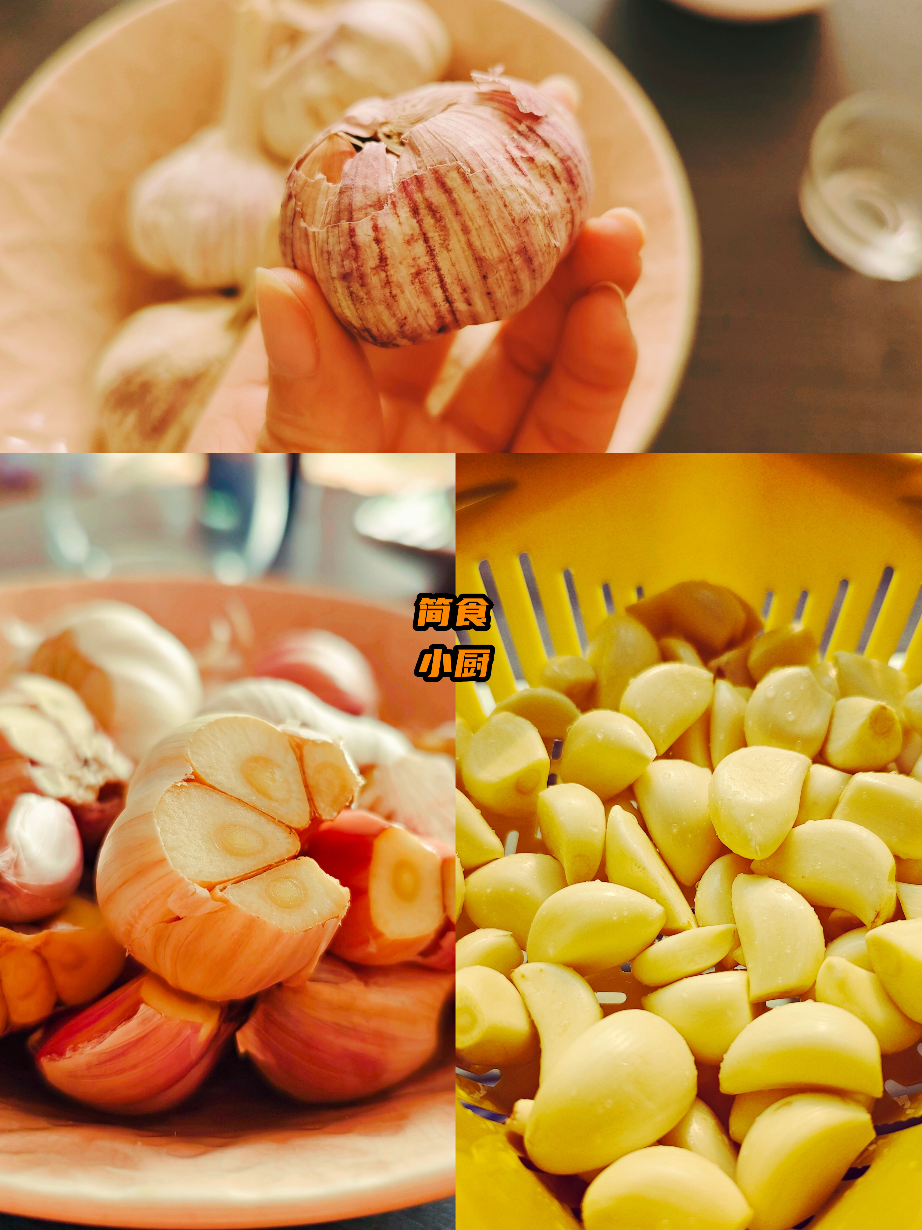 1、选用紫皮蒜,因为紫皮蒜瓣小,泡得透,蒜瓣硬邦瓷实,泡出的蒜脆香;