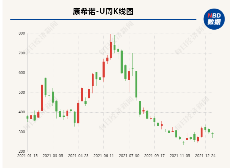 令其收入大增和名声大噪的,当属2021年2月获附条件上市批准的新冠疫苗克威莎。但随着疫苗接种率的提高和新冠特效药的横空出世,疫苗股热度不及2021年年初。其中,以腺病毒载体为技术路线的克威莎在加强针接种时面临推广的不确定性,导致全年股价遭遇下挫。