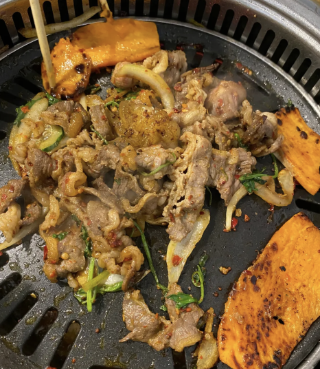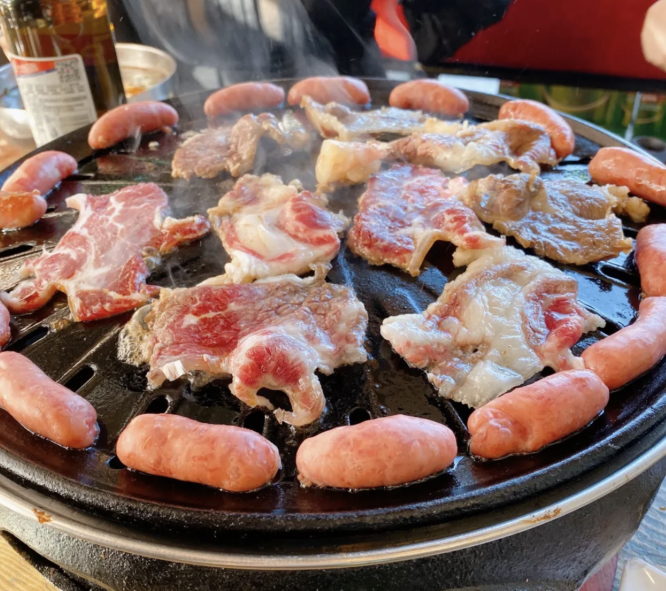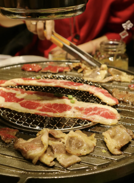 炭火在下面烧,火苗扫过肉 ,吃起来也格外香。着急忙慌夹起一筷子裹上料,再包菜塞进嘴里咽下,只剩肉香留在舌尖。